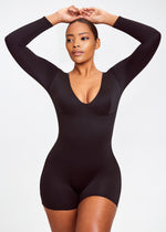 À la recherche d'un style confortable et léger pour vous donner une silhouette élégante ? Le Body à Manches Longues avec Short Plongeant a tout ce qu'il vous faut. Notre tissu qui évacue l'humidité est parfait pour de longues journées au bureau et se porte très bien comme haut avec vos bas préférés. Il offre une compression légère et son soutien-gorge intégré vous maintiendra soutenue toute la journée !